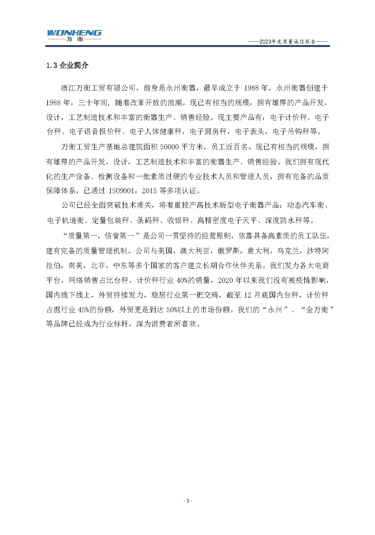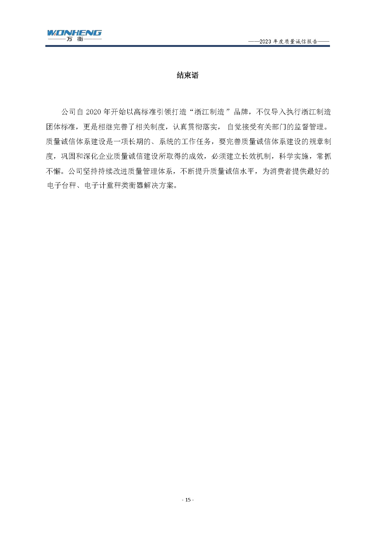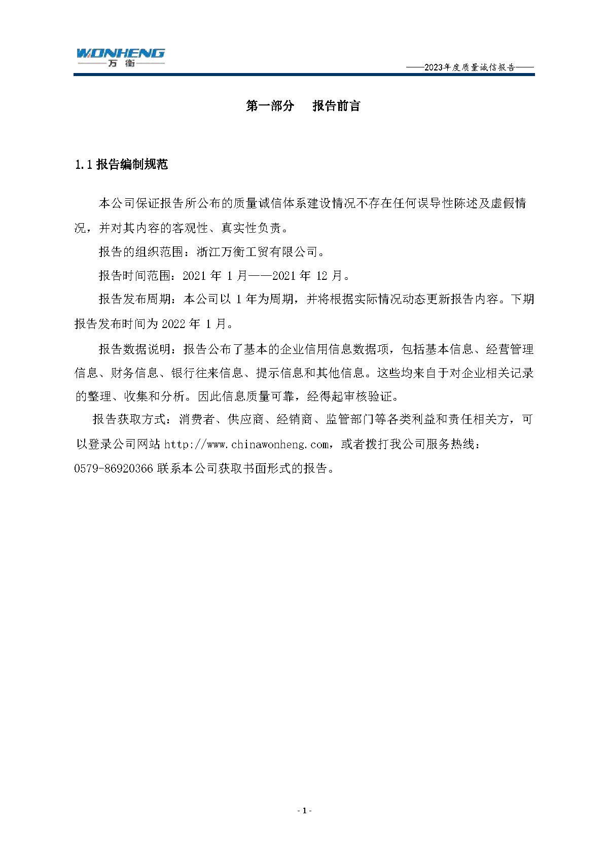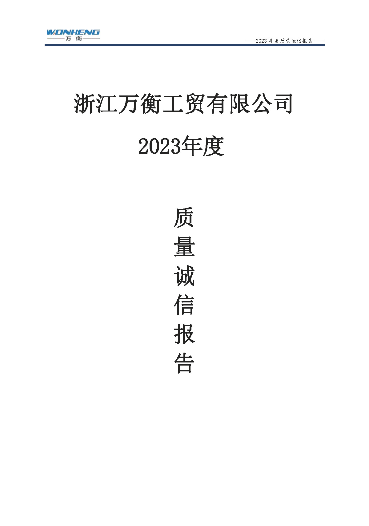浙江萬衡工貿(mào)有限公司2023年度質(zhì)量誠(chéng)信報(bào)告