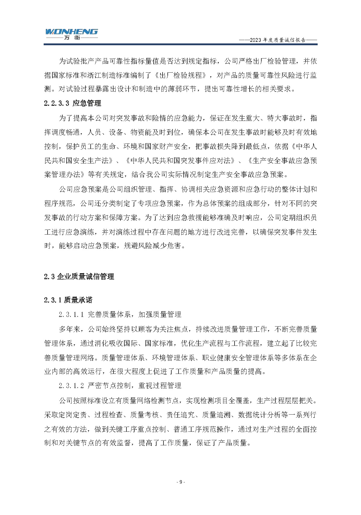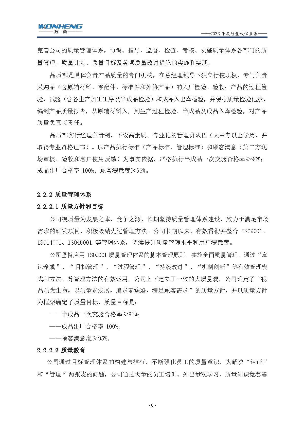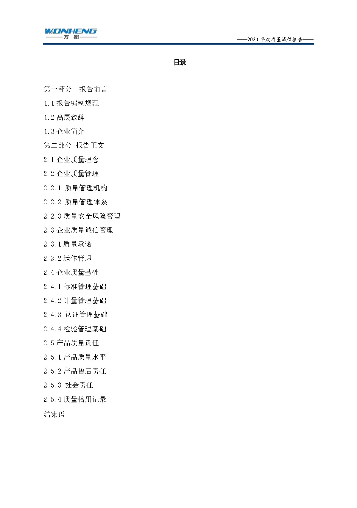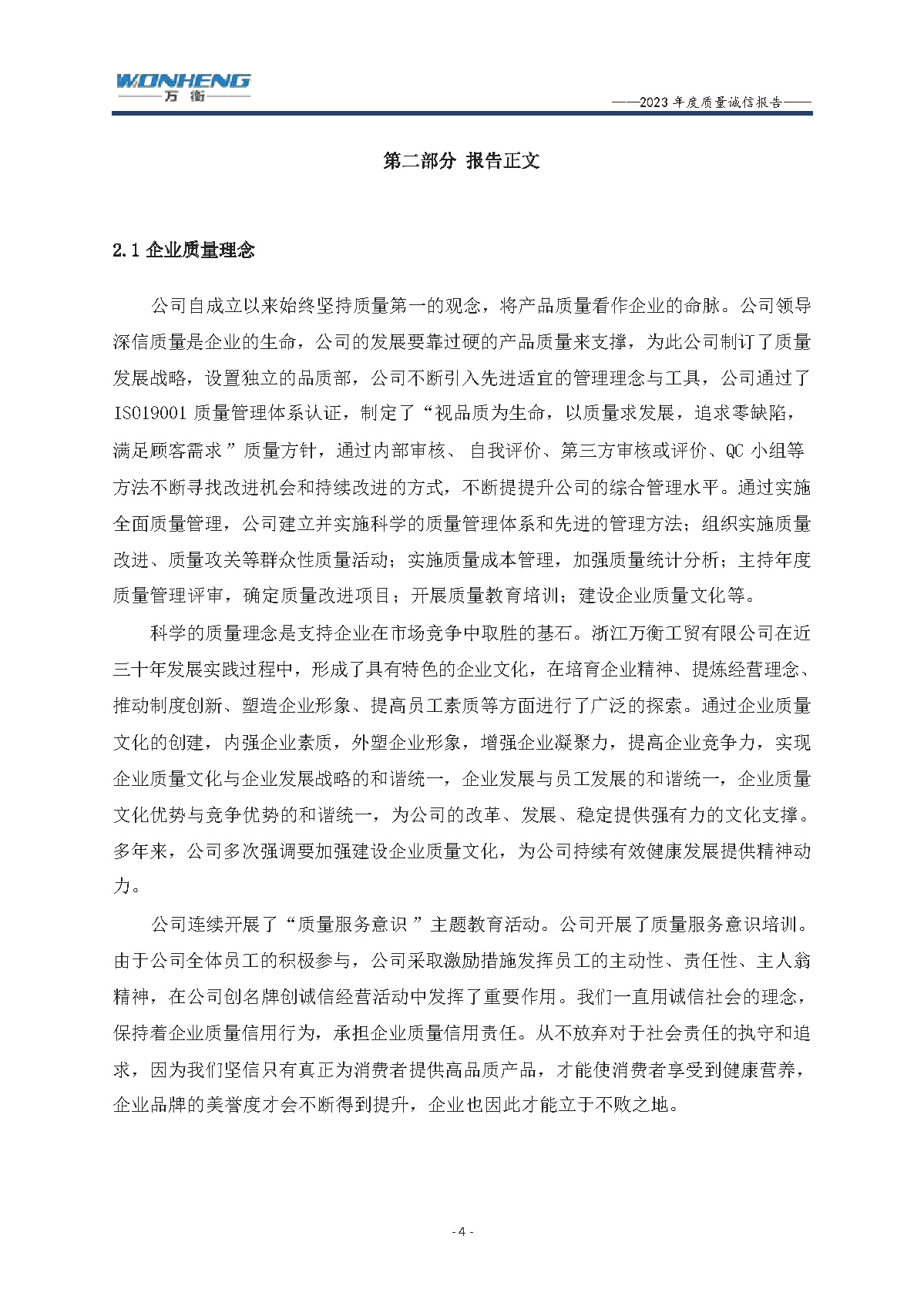 浙江萬衡工貿(mào)有限公司2023年度質(zhì)量誠(chéng)信報(bào)告
