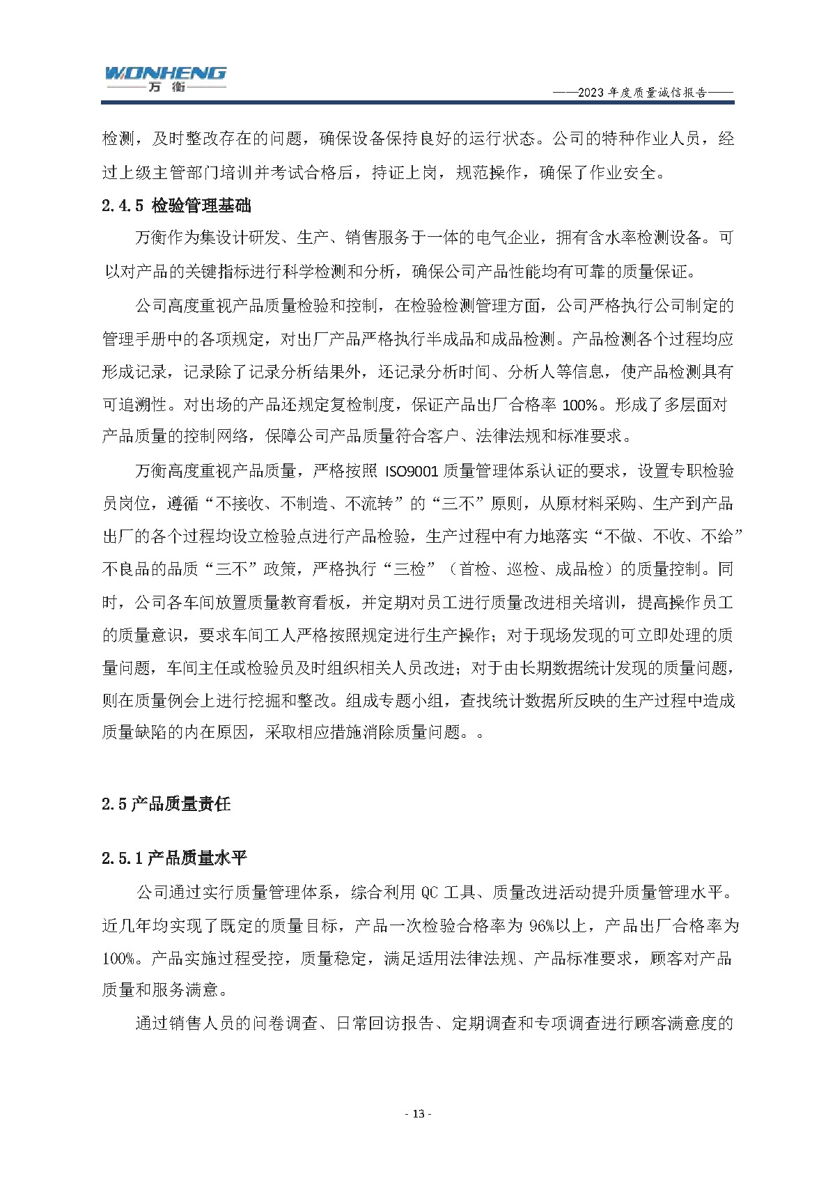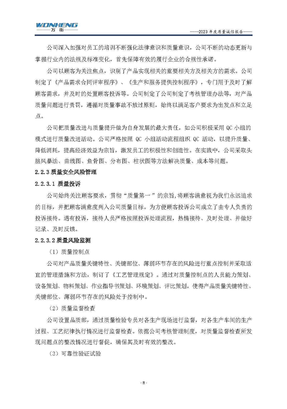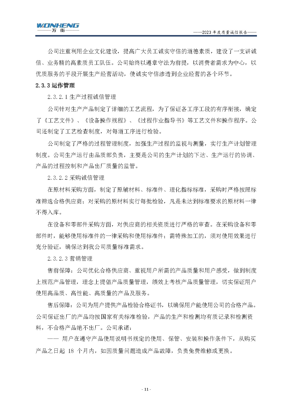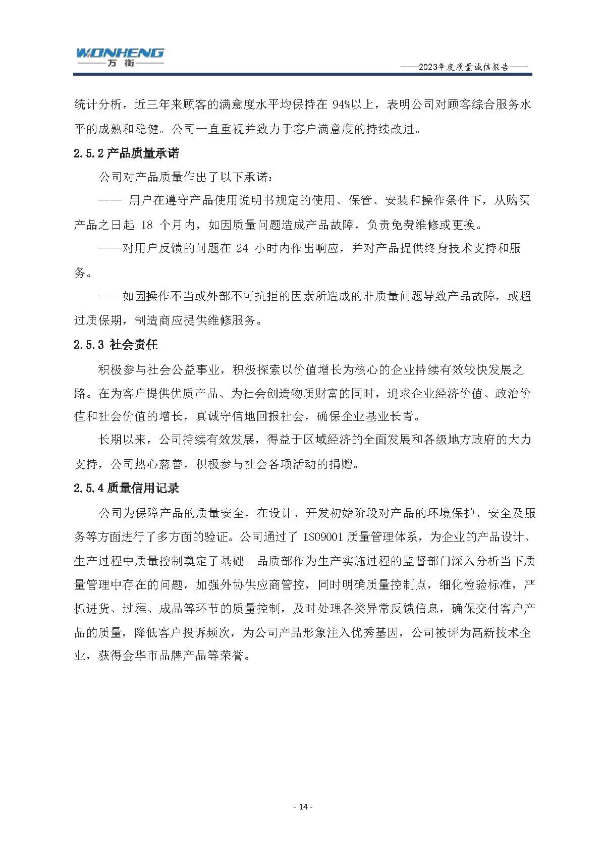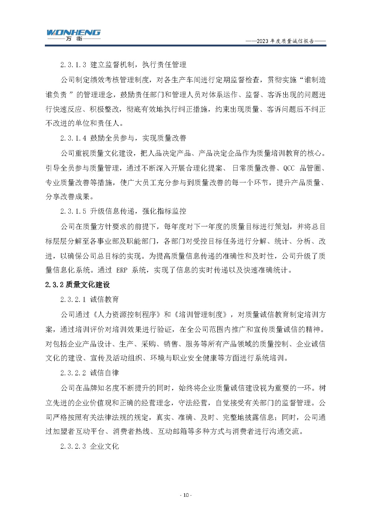 浙江萬衡工貿(mào)有限公司2023年度質(zhì)量誠(chéng)信報(bào)告
