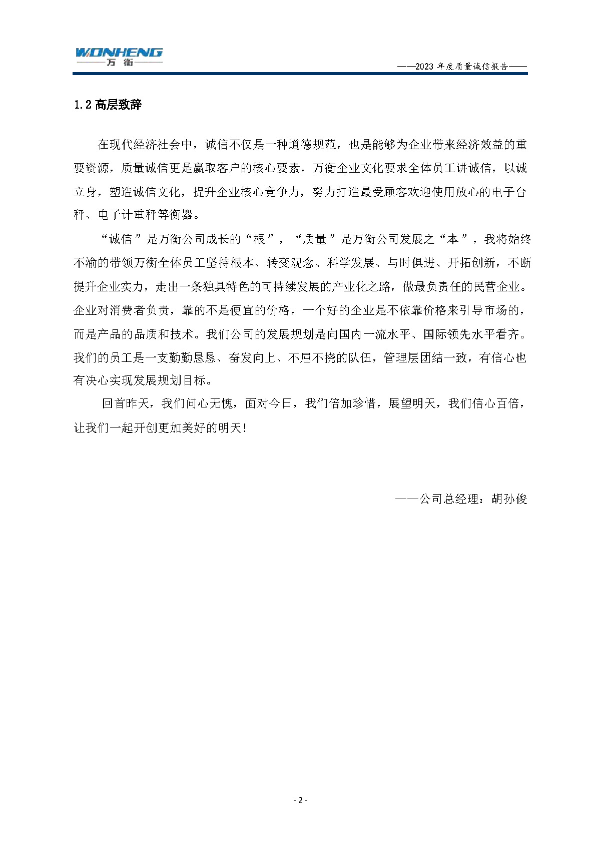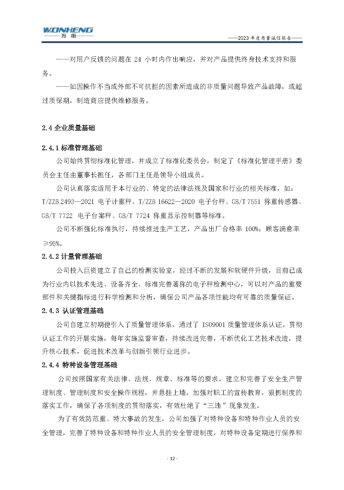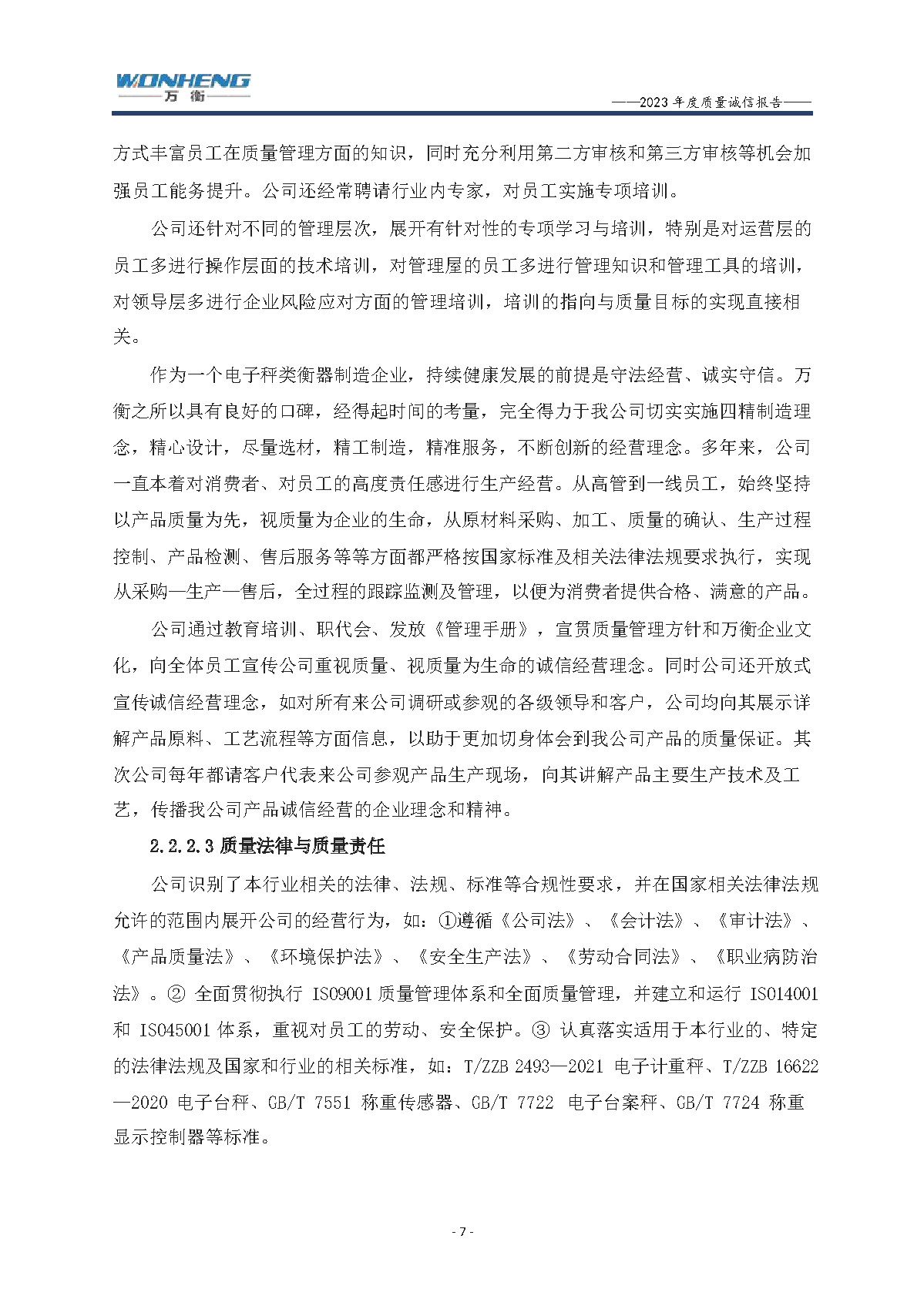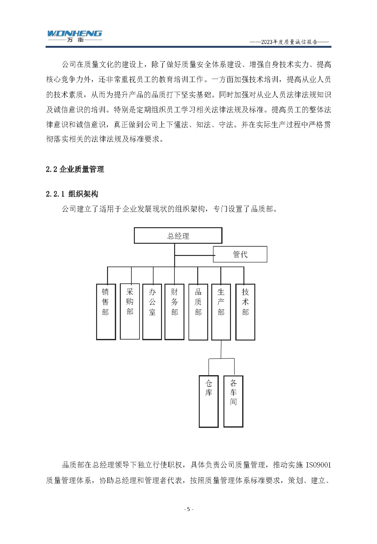 浙江萬衡工貿(mào)有限公司2023年度質(zhì)量誠(chéng)信報(bào)告